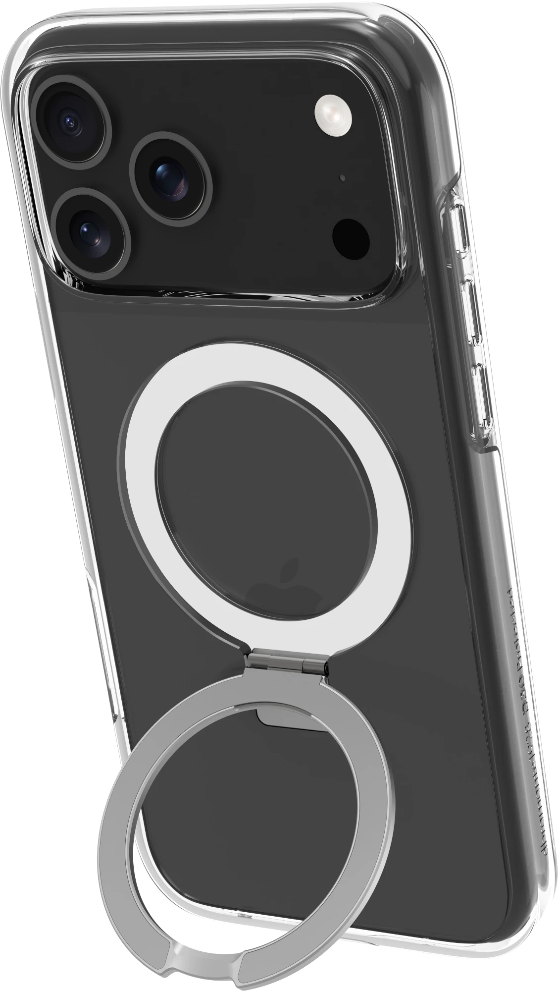 Integrierter MagSafe-Magnet, der nicht nur nahtloses kabelloses Laden und volle Kompatibilität mit MagSafe-Zubehör ermöglicht, sondern auch einen verstellbaren Ständer, der sowohl horizontale als auch vertikale Blickwinkel unterstützt.