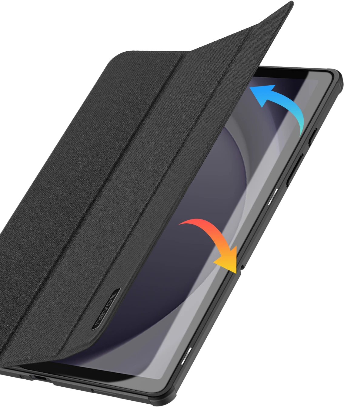 Durch die unsichtbar integrierten Magneten wird die Bedienung kinderleicht, das iPad startet nach dem öffnen der Frontklappe (Wake up Funktion) und die Schutzhülle öffnet sich nicht ungewollt.